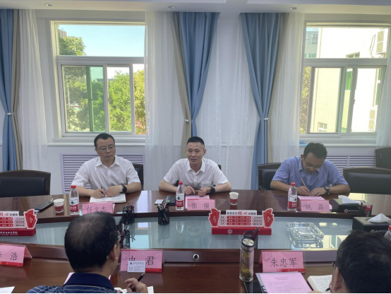 会上,朱忠军对张强一行的来访表示热烈的欢迎。双方分别介绍参会人员、观看学校宣传片。朱忠军简要介绍了我校的办学历史、办学特色以及学校目前新校区建设情况,希望双方能增进交流,在人才培养、产教融合方面开展深度合作,优势互补,为推动和服务区域经济发展做出更大贡献。
