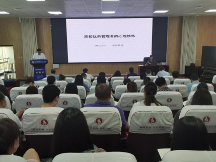 6月15日下午,我校青年干部业余培训学校举行第三讲,邀请西北大学博导、教务处长曹蓉教授为学员讲授《高校优秀管理者的心理修炼》专题讲座。我校青年干部业余培训学校近百余名青年干部聆听了此次报告,组织部部长丁晓军主持会议。
