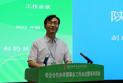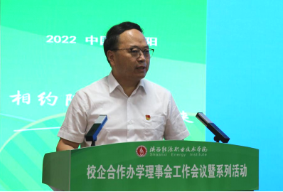朱周岐理事长代表陕西能源职业技术学院校企合作办学理事会,向各位理事会成员和与会代表汇报了一年来的工作情况。理事会紧盯行业板块,不断加强校企合作,深化产教融合,发挥校企合作的聚能效应,以现代学徒制培养为切入点,以产教融合为突破口,有力吸引企业资源,探索校企合作新模式,共建产业学院,推进职教集团实体运行,以“一体两翼五步融合”搭建产教融合育人平台,有力推动人才培养质量、学校办学水平、企业发展和社会影响力提升。2022年,理事会将深入贯彻落实全国职业教育大会精神,以《职业教育法》为指导,坚持有力推进和重点突破相结合,深化推进职业教育产教融合,结合国家“双高计划”建设,切实推进产教融合发展,将习近平总书记对职业教育“大有可为”的殷切期待转化为学校“大有作为”的生动实践,以实际行动迎接党的二十大胜利召开。