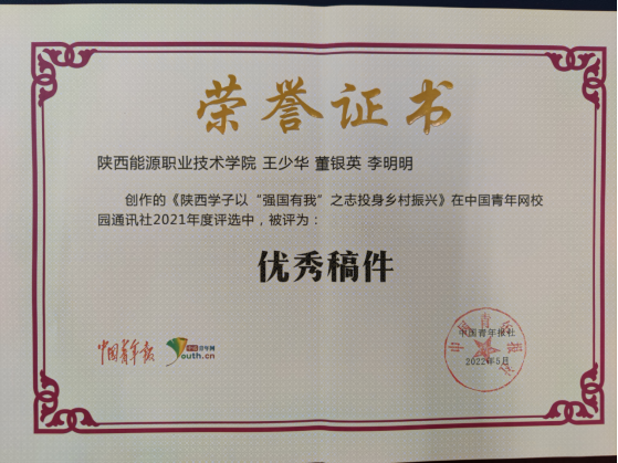 近日,中国青年网发布信息对“中国青年网校园通讯社2021年度评选活动”进行总结通报,对2021年度优秀原创稿件、优秀通讯站等进行表彰,我校4篇稿件入选“中国青年网校园通讯社2021年度百篇优秀稿件”。