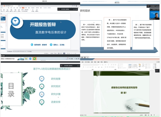 48位本科生认真阐述论文的目的意义、研究内容、方案设计及研究计划,指导教师对每一份开题报告提出了修改完善意见,进行了认真评议和表决,各小组通过开题答辩记录表以及视频、图片和文字记录学生答辩情况,做好存档。本次线上开题答辩工作圆满结束,为我校2023届联合培养本科毕业论文(设计)保质保量完成打下了坚实基础。