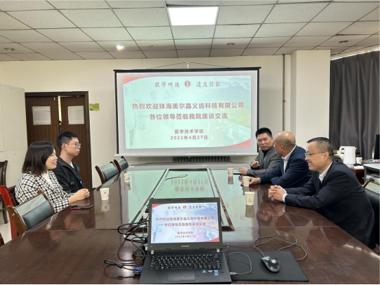 4月27日,珠海美尔晶义齿科技有限公司、陕西丹特威齿科技术发展有限公司来我校座谈交流,校党委副书记任向明、医学技术学院负责人参加。