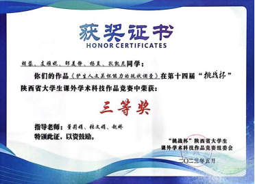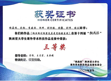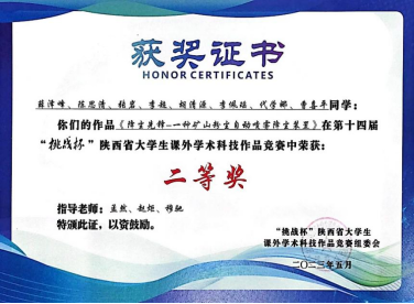 近日,由团省委、省委教育工委、省科技厅、省科协、省社会科学院、省学联共同主办的第十四届“挑战杯”陕汽集团陕西省大学生课外学术科技作品竞赛圆满落幕。共有80所高校的878件作品报名参赛,我校9件作品入围省赛,经过激烈角逐,最终获得二等奖4项、三等奖4项的好成绩,为历年获奖数量之最。