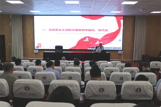 校党委副书记任向明作题为《当代中国发展进步的根本方向—关于新时代坚持和发展中国特色社会主义》的党课。他以中国特色社会主义的形成和发展为切入点,从中国特色社会主义是历史的结论、人民的选择;中国特色社会主义是社会主义,不是别的什么主义;中国特色社会主义事业总体布局和战略布局;坚定道路自信、理论自信、制度自信、文化自信;丰富和发展二十一世纪中国的马克思主义;新时代坚持和发展中国特色社会主义要一以贯之六个方面进行了精彩讲授。