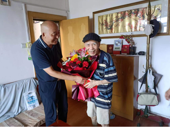 任向明代表学校党委慰问抗美援朝老红军、老战士庞征弘、王德谦、陆允俦,向他们致以节日的问候和诚挚的祝愿。