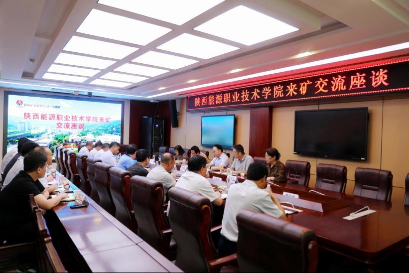 王鹏飞对朱忠军一行的到来表示欢迎,对陕西能源职业技术学院为黄陵矿业培养和输送一大批行业优秀人才表示感谢,并从安全生产、经营管理、智能化建设、绿色矿山建设和党建等方面对公司基本情况进行了简要介绍。他希望以此次交流为契机,加深双方的合作深度与广度,努力实现优势互补、多赢发展,进一步提升黄陵矿业的科技创新能力和企业的核心竞争力,共同为煤炭行业高质量发展作出积极贡献。