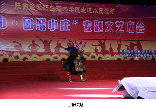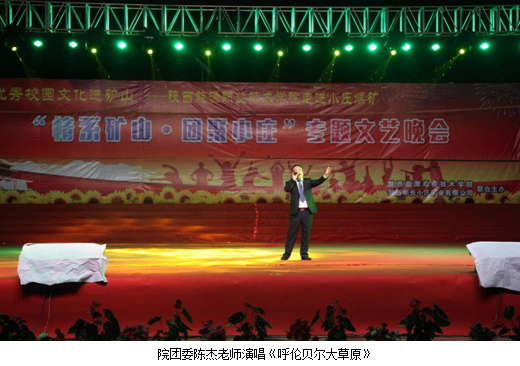 10月13日,我院“优秀校园文化进矿山”系列活动之——“情系矿山•团聚小庄”专题文艺晚会,在陕西彬长小庄矿业有限公司举行。学院党委副书记郭开龙、团委书记于涛;陕西彬长小庄矿业有限公司党委副书记、执行董事、总经理陈跟马,党委书记杨玉成,党委副书记、工会主席、副总经理郭俊生,纪委书记景志义,副总经理贺彦文、董红涛;以及陕能院学生代表、小庄矿职工代表等500多人共同观看晚会。