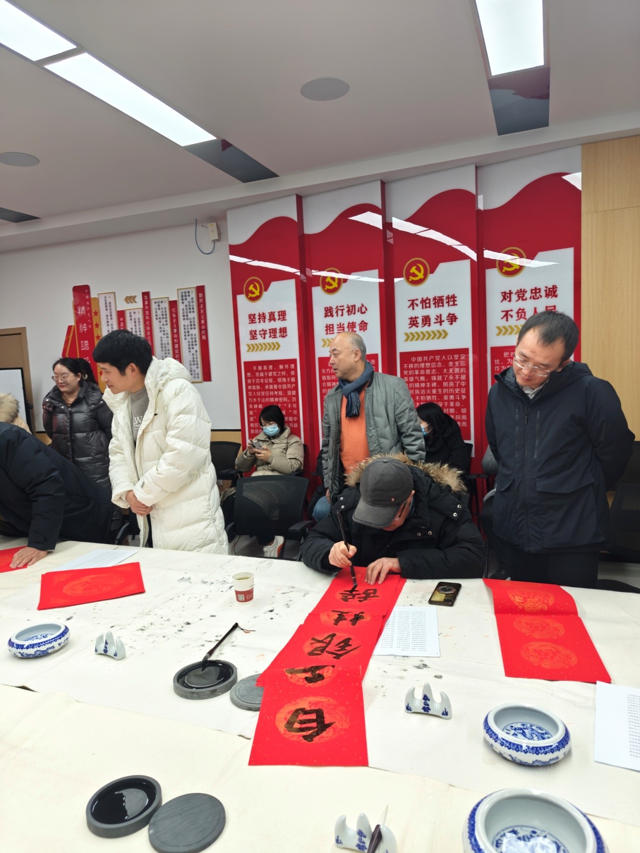 校工会精心准备了笔墨纸砚等书法文具,特别邀请西安财经大学原校长、西北大学博士生导师、我校碳中和研究中心首席专家胡健教授,陕西省书法家协会会员、西安财经大学杜一哲、邱天瑞教授,中国书法家协会会员、陕西省书协学术委员会委员、终南印社副社长、西安财经大学文学院侯立新教授,中国(西安)丝绸之路研究院王命宇院长、我校多位书法爱好者买中傲、徐成军、唐晓民、胡忠民等现场写春联并指导创作。