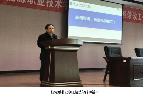 校党委书记令狐培选在总结讲话中指出,此次的培训会很有意义,专家从诊改的不同层面、不同方面作了讲解,使我们进一步认识了诊改工作的意义、内涵和主要做法,对我们的启发很大、指导很多。他要求全校职工认真学习培训内容,并对今后的工作提出了以下几点要求和希望。一是提高思想认识,高度重视诊改工作,集中时间和精力推进落实;二是要认识到诊改工作也是一项常规工作,与我们的日常工作密不可分,要与学校其他工作结合,共同推进;三是认真研读文件,全面掌握诊改的文件规定、政策要求和专家解读;四是明确任务分工,诊改办尽快明确各部门工作任务、目标要求和时间进度,抓紧组织实施,做好组织协调工作,层层落实,积极有效推进工作;五是加强检查监督,对诊改工作实施进展要及时掌握、定期研判和检查督促,学校将把诊改工作实施情况和效果作为单位考评、干部考核和干部任用的重要依据。希望大家共同努力,做好诊改工作,为优质院校建设打好坚实基础。