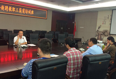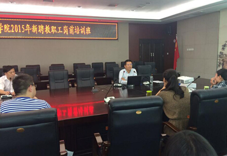 2015年9月24日至25日,学院在综合楼三楼会议室举办新聘教职工岗前培训班,院领导班子成员、各处(室)、系(部)负责人参加会议,副院长赵新法主持开班仪式。