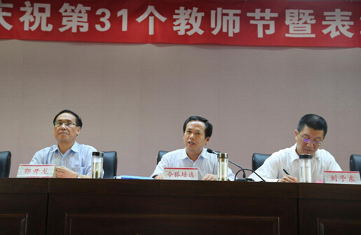 2015年9月10日下午,我院庆祝第三十一个教师节暨表彰大会在实训楼报告厅隆重举行。学院领导班子成员、全院教职工和学生代表参加会议,院长刘予东同志主持会议。