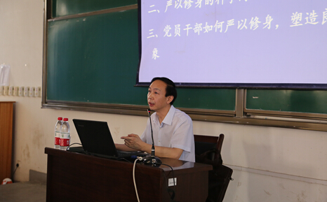段鹏飞教授从严以修身的现实迫切性;科学内涵和具体要求;如何严以修身、塑造良好形象等3个方面作了一场内涵丰富、寓意深刻的专题辅导。段教授结合十八大以来高官落马现象,进行了深入剖析,阐释了党员干部严以修身的重要性,提出了党员干部如何严以修身、塑造良好形象的具体方法:一是必须加强理论学习;二是必须树立党员意识或党的意识;三是必须坚定理想信念;四是必须牢记为人民服务的根本宗旨;五是必须净化自己的交际圈。