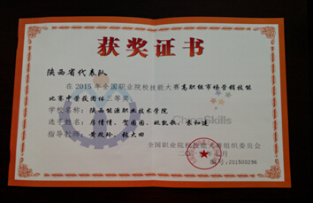 2015年6月5日,“全国职业院校技能大赛” 高职组市场营销技能比赛在无锡商业职业技术学院举行。比赛内容为网络营销和情景营销两个部分。来自全国各职业院校的76支代表队参加了本次比赛。由我院经济管理系张大田、黄改玲两位老师指导,市场营销131班房倩倩、贺园园、袁和建、姚凯歌四位同学组成的代表队获得三等奖。