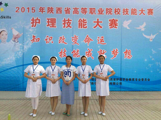 在咸阳职业技术学院举行的2015年陕西省高职类护理技能大赛中,我院派出由医学护理系护理1418班曾竞、护理 128班吴婷、护理123班马双婷、张建娜等同学组成的代表队参赛,曾竞、吴婷、马双婷获二等奖,张建娜获三等奖。并推荐吴婷同学代表学院参加全国高职类护理技能大赛。