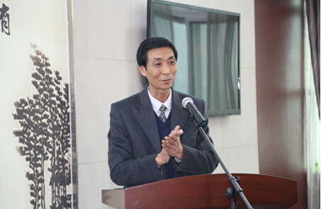 图为第一届理事会理事长朱周岐同志讲话