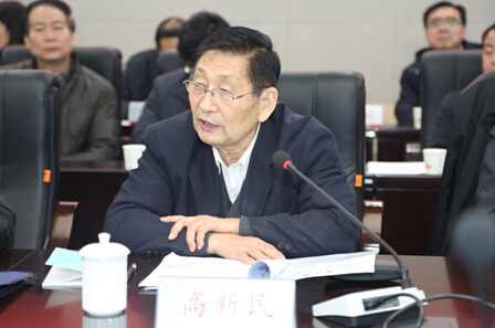 图为陕西省煤炭学会顾问、原理事长高新民同志讲话