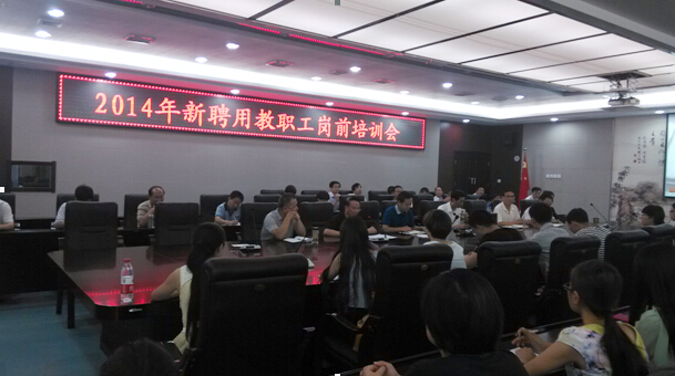 8月25日,我院2014年新聘用教职工岗前培训会在行政楼三楼会议室隆重召开。学院领导、相关部门负责人和2014年新聘用的教职工出席会议。会议由学院副书记、副院长何从军主持。