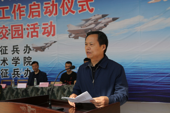 校党委书记令狐培选为此次活动致辞。指出学校将一如既往地支持国防建设,勉励同学们要以当兵为荣,不后悔参军入伍,实现中国梦、强军梦,离不开青春的力量,参军入伍正当时。令狐书记希望广大青年学生能踊跃参军,这是历史赋予的时代重任,也是有志青年应该履行的使命担当。