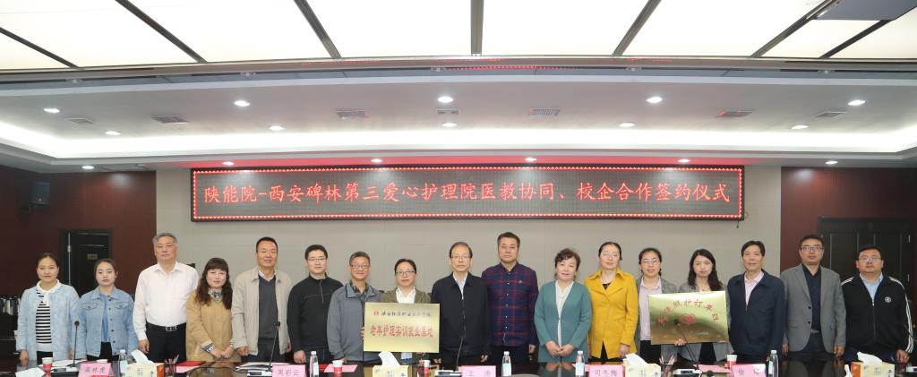 仪式上,在李耀辉副校长和王涛董事长的见证下,西安市碑林区第三爱心护理院与学校分别签订了《校企合作协议》和《 订单班协议》,互授牌匾,学校授企业“老年护理实习就业基地”牌,企业授学校“天使照护订单班”牌,学校为爱心护理院三位专家颁发护理专业指导委员会专家聘书。