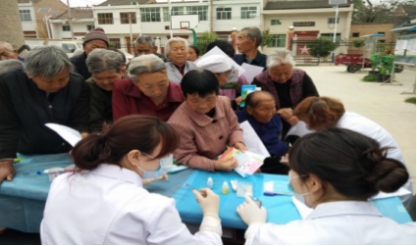 本次活动以“义诊活动进乡村,精准扶贫暖人心”为主题,主要包括免费体检、公共卫生服务咨询、健康宣教、急救知识宣讲等项目。一大早,老乡们就来到活动现场,有年迈的老人,也有带着孩子的妇女,大家有序排队领取体检表,量血压、测血糖、测听力、测血型、做心电图和尿常规检查,并咨询健康问题。老师们个个热情地接待、认真的检查、耐心地解答,针对每位检查者不同的情况给予生活和饮食上的建议,得到了村民们的一致认可和赞赏。老师们还为村民们讲解了高血压、糖尿病患者的正确饮食,引导大家改变不良的饮食习惯,运用健康的生活方式降低慢性病的危害。另外,老师们还分享了异物入眼、扭伤等情况下的急救知识,增强村民应对突发事件的自救能力。