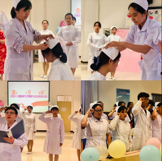 赛后进行了护士授帽宣誓仪式,全体学生庄严宣誓:将救死扶伤、防病治病,实行社会主义的人道主义,全心全意为人民服务为宗旨的南丁格尔精神发扬光大。