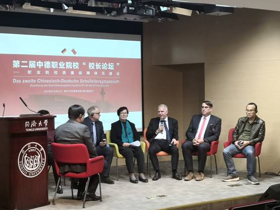本次校长论坛的主题是 “职业院校质量保障体系建设”,是根据《国务院关于加快发展现代职业教育的决定》(国发【2014】19号)、《现代职业教育体系建设规划(2014-2020)》、《国家职业教育改革实施方案》的要求,结合《教育部财政部关于实施中国特色高水平高职学校和专业建设计划的意见》精神,为促进职业院校强化内部质量保障体系建设,提升国际交流合作水平,深化产教融合和校企合作,完善职业教育和培训体系,支撑产业高质量发展。同济大学联合德国巴伐利亚州文教、德国汉斯赛德尔基金会和慕尼黑孔子学院于10月31日共同承办了“2019中德职业院校校长论坛”活动。