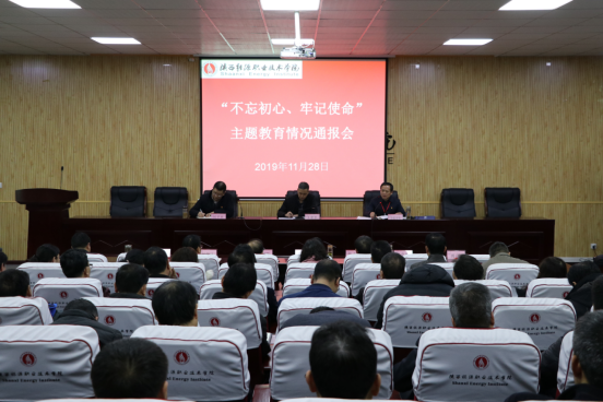 11月28日下午,我校在办公楼四楼文林大讲堂召开“不忘初心、牢记使命”主题教育情况通报会。省委教育工委、教育厅“不忘初心、牢记使命”主题教育第二巡回指导组成员王宏卫参加。学校领导班子成员、副科级以上干部、各党支部书记、副高以上职称教师代表近130人参加会议。会议由校党委副书记、校长刘予东主持。