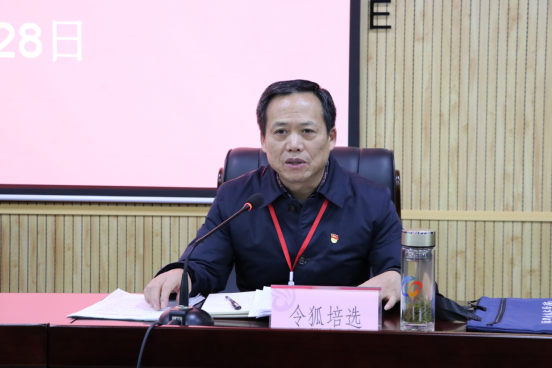 令狐培选分两个部分向大家进行通报。第一部分,通报主题教育开展情况,从理论学习、调查研究、检视问题、整改落实四个方面报告了我校“不忘初心、牢记使命”主题教育的整体进展情况。第二部分,通报整改落实情况,主要对“关于中央和省委要求的加强党委对学校工作的全面领导问题”“关于加强二级学院党建工作、进一步发挥基层党组织战斗堡垒作用和共产党员先锋模范作用问题”“关于调整干部政策,改善干部队伍结构问题”“关于加强辅导员队伍建设、实行辅导员及思想政治系列职称单独评审问题”“ 关于扩大校园面积、满足学校事业发展问题”等35个问题的整改落实情况进行通报。强调我校主题教育开展的富有成效,主要表现在:一是抓得实,把主题教育整改工作不仅作为规定动作和任务,而是一开始就作为解决实际问题、促进学校发展的重要机会,找准问题,有效解决,取得显著成效。二是抓典型,发掘身边典型,开展向全国先进工作者张大田老师学习活动,营造学榜样的浓厚氛围。三是有特点,持续推进学校革命文化教育实践“五个五十工程”,契合中央强调的开展革命文化教育的要求,使红色基因革命文化在校园里得到彰显。四是建制度,注重发挥制度作用,建立长效机制,为学校长远发展打好基础、提供支撑。