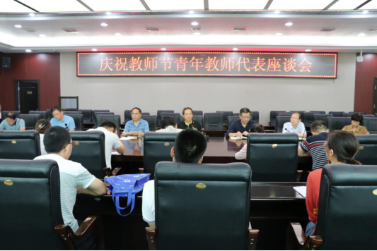 9月14日下午,在综合楼第三会议室,校工会组织召开了我校庆祝教师节青年教师代表座谈会。校党委书记令狐培选、副书记、校长刘予东、副书记郭开龙、副校长李耀辉出席会议,校工会主席杨笑琪主持会议。