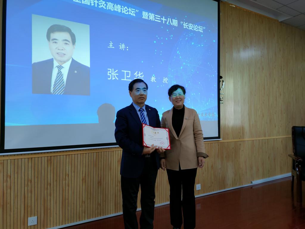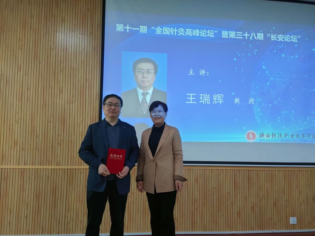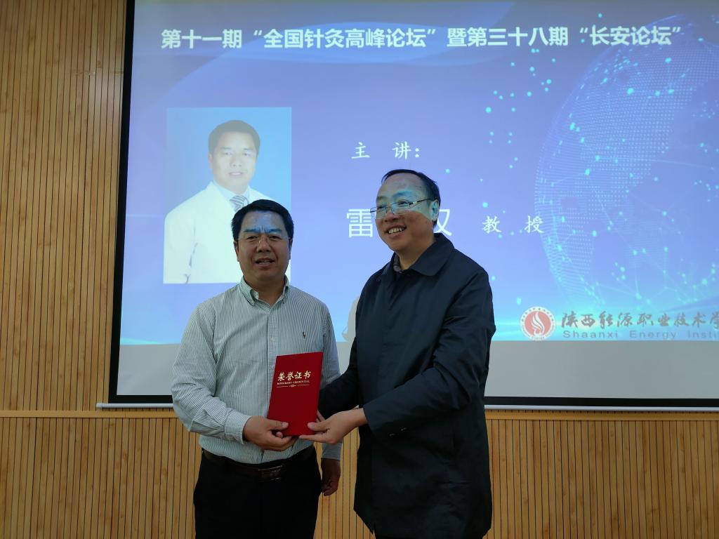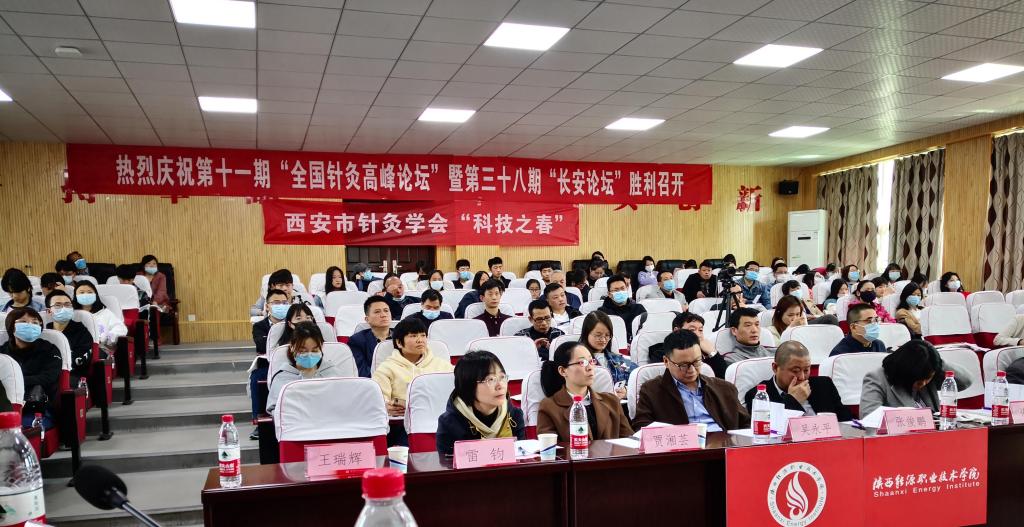 4月18日上午8:30,由陕西能源职业技术学院、西安市中医医院长安方氏头针流派传承工作室、西安市中医药研究院针灸研究所、长安方氏头针重点研究室、陕西省针灸学会针药结合专委会、西安市针灸学会联合主办的第十一期“全国针灸高峰论坛”暨第三十八期“长安论坛”在我校文林大讲堂顺利举行。来自于四川省、陕西省等地区医院、学校的线下会员近100人,全国各地医疗机构线上会员19732人参加论坛。