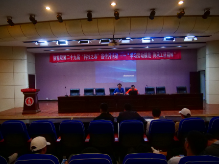 为大力弘扬“工匠精神”,实施匠心培育,提升学生职业素养,4月21日,学院在实训楼六楼报告厅举办“学习劳动模范 传承工匠精神”科技之春系列活动讲座。讲座特邀吉利汽车集团西安基地工程师曾楠为全体学生做专题报告。讲座由汽车及热动教研室主任王萌主持。