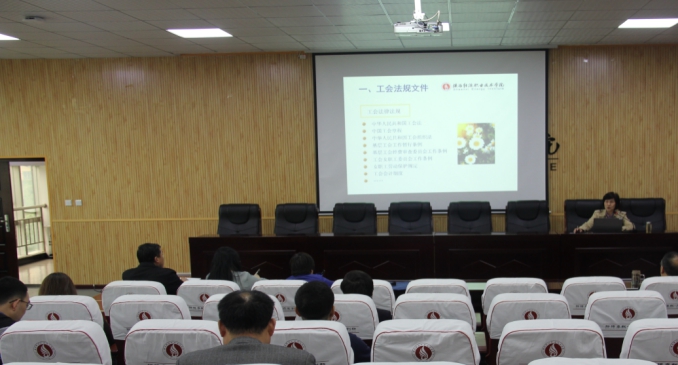 为了提升我校工会干部的业务素质和工作能力,增强工会干部的制度意识和规矩意识,4月27日下午,校工会在办公楼四楼文林大讲堂举办工会干部业务培训专题讲座,校党委委员、工会主席杨笑琪同志主讲,校党委副书记郭开龙同志主持,校工会专兼职干部、各基层工会主席和委员50余人参加。