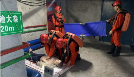学院组织应急救援竞赛的学生训练队在模拟矿井进行演示,井下救援包括闻警出动、救援准备、灾区侦察、伤员抢救与灾害处理等内容。展示过程中,学生应急救援队的队员们精神饱满,展示出娴熟的专业技能水平。同时,组织采矿、安全、通风专业学生观看现场录制的安全应急救援比赛视频。