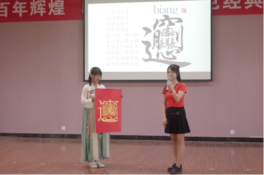 在工作人员进行选手成绩统计的同时,图书馆三位老师献上了精彩的演出。何柳老师带来的节目让我们深刻了解到陕西文化,王卫红老师演唱了经典红歌,徐成军老师进行书法展示。三位老师将现场气氛引向了高潮,赢得了现场观众的阵阵喝彩与掌声。