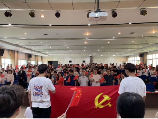 赛前,全体师生起立,奏唱《没有共产党就没有新中国》。随后,刘涛说明了此次诵读比赛的规则。