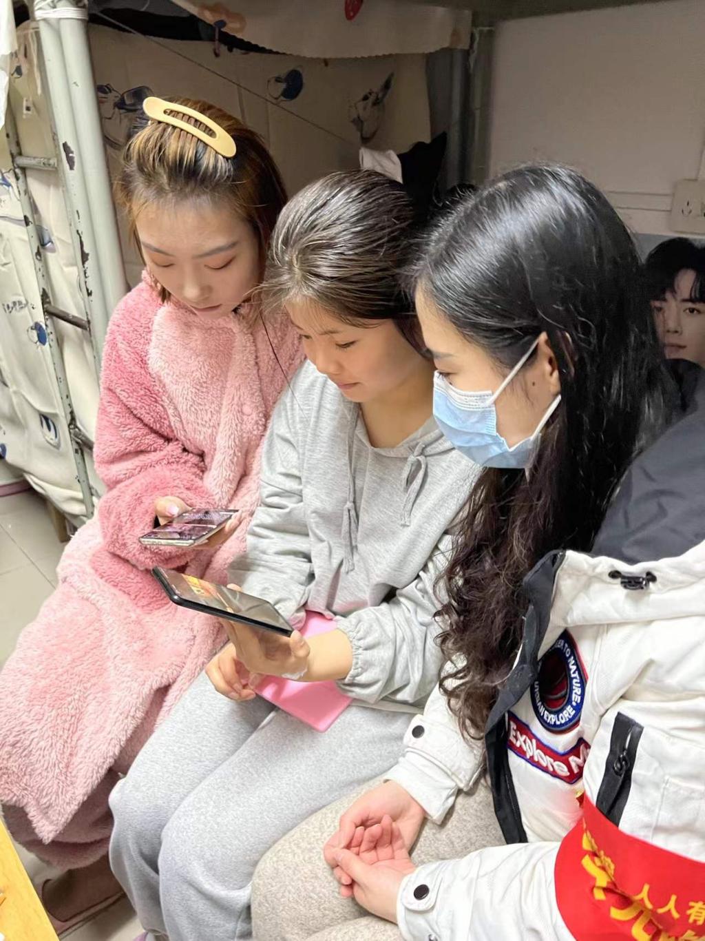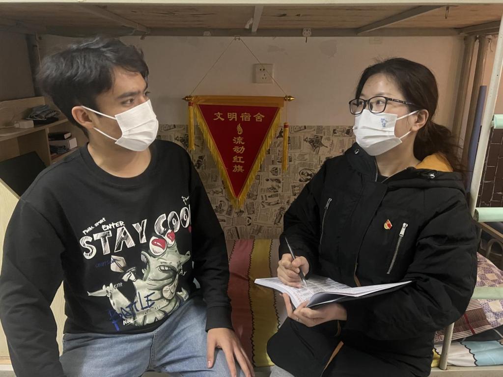 守护每一位学子的生命和健康是辅导员义不容辞的责任担当和使命情怀。全体辅导员24小时响铃开机,在疫情防控工作中实处着力、结合实际,逐渐摸索建立了落实防控日常事项、重要事项、特别关注对象、重点关注生病学生的“四项机制”:日常事项“辅导员—班主任—舍长—班级同学”的“人盯人”的落实反馈机制;重要事项通知到班主任及线下负责教师,确保将信息通知到每位同学;建立对特别关注的同学直接联系机制;辅导员深入宿舍了解学生实际情况,有针对性的解决学生所所需问题;对近期发烧咳嗽等需重点关注学生,保持每天一对一、点对点沟通联系,直至学生康复。脚踏实地关心学生的身心健康,构筑在校学生“安全岛”。
