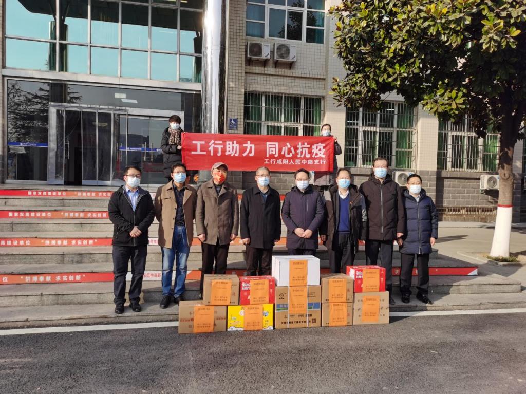 1月15日上午,中国工商银行咸阳分行行长杜斌、咸阳分行副行长李文鹏、机构部经理康晓娣、公司信贷部经理任力、文林路支行行长康良、人民中路支行行长张晓虎、人民中路支行行长助理南楠一行7人来校慰问并捐赠防疫物资。校长朱忠军、党委副书记任向明在党政办、财务处等相关部门负责人的陪同下代表学校接受捐赠。