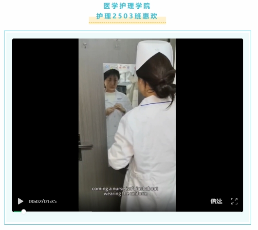 在众多作品中,豆诗涵的参赛视频突破传统校园Vlog叙事框架,凭借新颖的镜头语言、富有巧思的转场剪辑与清晰流畅的内容结构,将校园日常与特色美食巧妙串联,充分展现了出色的新媒体创作能力与创新思维,为观众呈现了一场兼具视觉与听觉的精彩体验。刘佳的作品则以细腻温情的镜头,讲述了自己专注学业、勇攀知识高峰,同时利用课余时间投身戏剧社(DRAMA CLUB)的青春历程。作品叙事节奏张弛有度,情感表达真挚动人,于平凡的校园生活中挖掘出温暖深刻的成长力量,让观众在短短数分钟内,真切感受到医学生坚守初心、向阳而行的精神风貌,故事完整性与情感感染力俱佳。