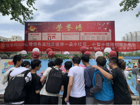 为切实推进心理健康工作、提高心理育人水平,着力培育学生乐观、积极、感恩的意识,智信学院于5月20日中午11:40在操场东门开展第六届心理育人——5•20心理特色活动之“送你一朵小红花、小智小信给你爱的抱抱”活动。