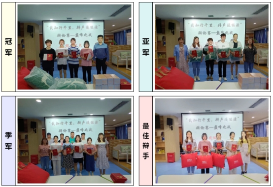 5月21日上午,学校图书馆、读者协会在图书馆教师沙龙举行“载知行千里辩声漫能院”辩论赛。该活动由图书馆馆长刘涛、办公室主任何柳及刘莉老师、陈小丽老师、吴芳老师、王芳老师担任评委。