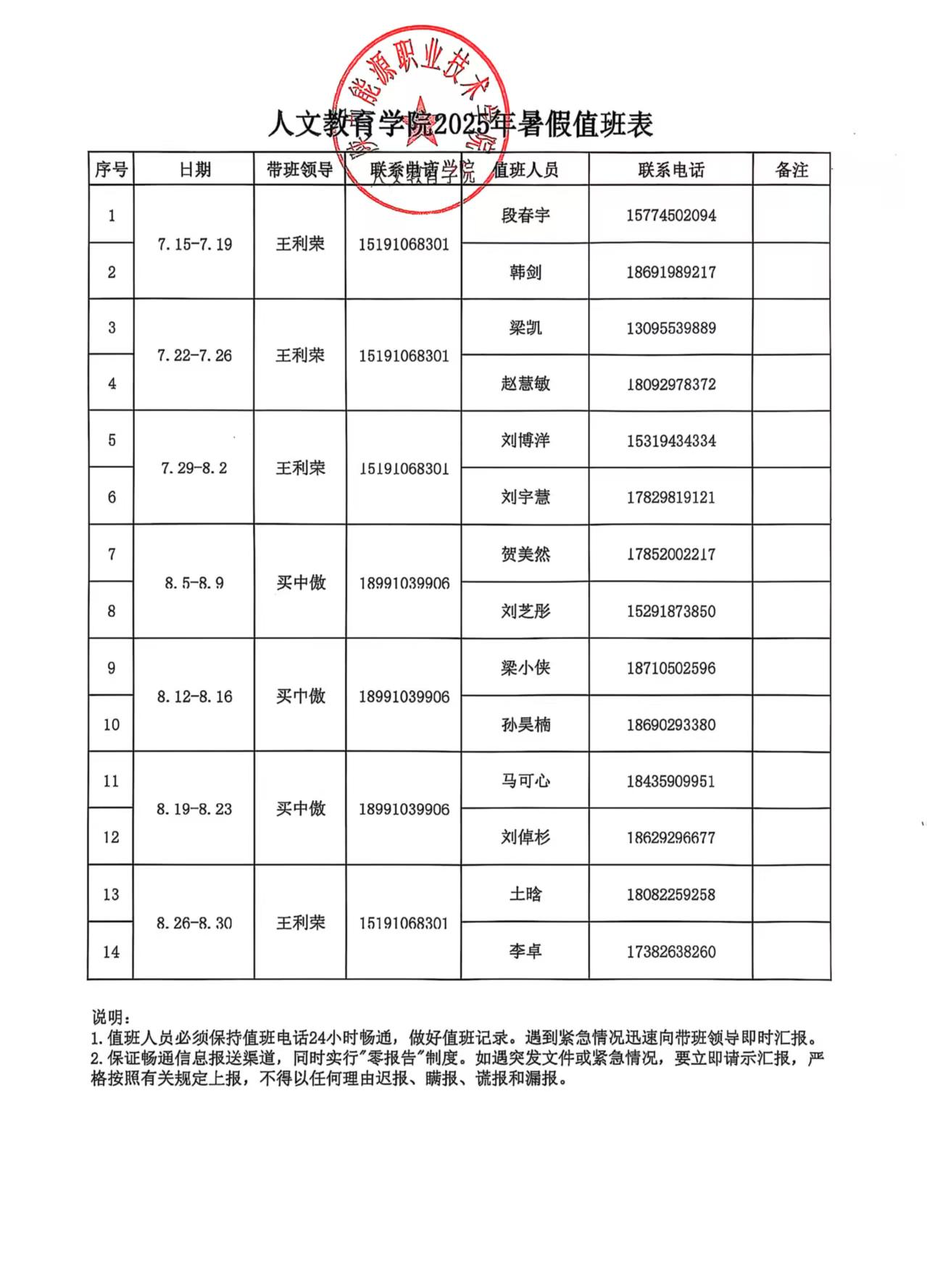 1.坚持学校党委统一领导,分级管理,责任到人,切实保障各项工作落实到位。学院各部门各司其职,切实做好2025年暑期及秋季开学期间各项工作安排。