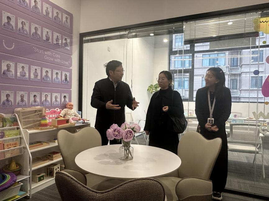 在企业负责人陪同下,对西安思睿乐母婴护理中心进行了实地参观,详细了解了企业“科学护理、人文关怀”的理念,以及母婴护理师、专业育儿师、入户托育师等岗位的技能要求与人才培养标准。