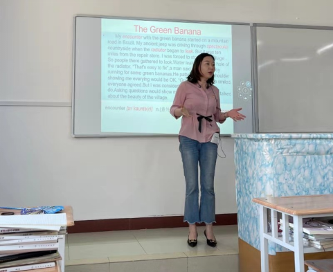 首先上场的是赵华老师,她通过讲解Going to college ,在谈论为什么要上大学的同时,教育学生爱校爱专业,学习工作有计划,做一个自信快乐的人。