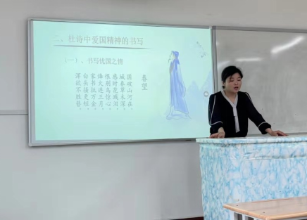 庞莹老师通过分析杜甫诗中的仁爱精神,传达了从古至今中华民族的爱国精神,文化自信。