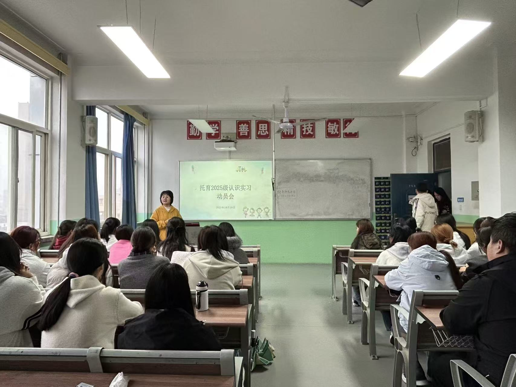 为帮助托育2025级学生提前熟悉行业岗位需求,明确认识实习目标与要求,10月20日,我院在教学楼713召开认识实习动员会。我院副院长王利荣、托育专业全体教师及2025级托育专业全体学生参加了本次会议。