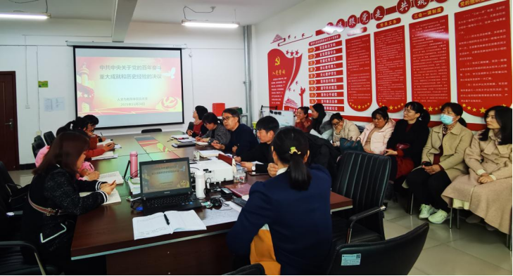 11月24日下午,党总支组织全院教职工集中学习了习近平关于《中共中央关于党的百年奋斗重大成就和历史经验的决议》的说明和《中共中央关于党的百年奋斗重大成就和历史经验的决议》,部署了下一阶段的学习任务。师培杰强调,全体党员教师应高度重视,统一思想,把深入学习宣传贯彻全会精神作为当前和今后一个时期的重大学习任务,要将学习宣传贯彻全会精神与深入推进党史学习教育紧密结合起来,指导实践、推动工作,为学院发展贡献力量。