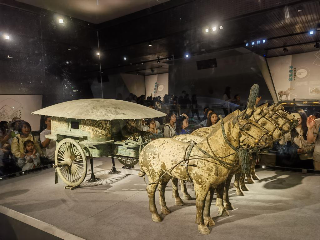 最后,党员们来到了秦始皇帝陵博物院参观学习,在其中展出的精工细作的秦陵铜车马,制造复杂、难度大、工艺精湛,由3000多个碎片,近7000个零部件整合而成。两套车马整体设计严谨合理,零部件虽多,但组装搭配巧妙,功能明确。这套大型的铜车马代表了秦代青铜铸造工艺的突出成就。