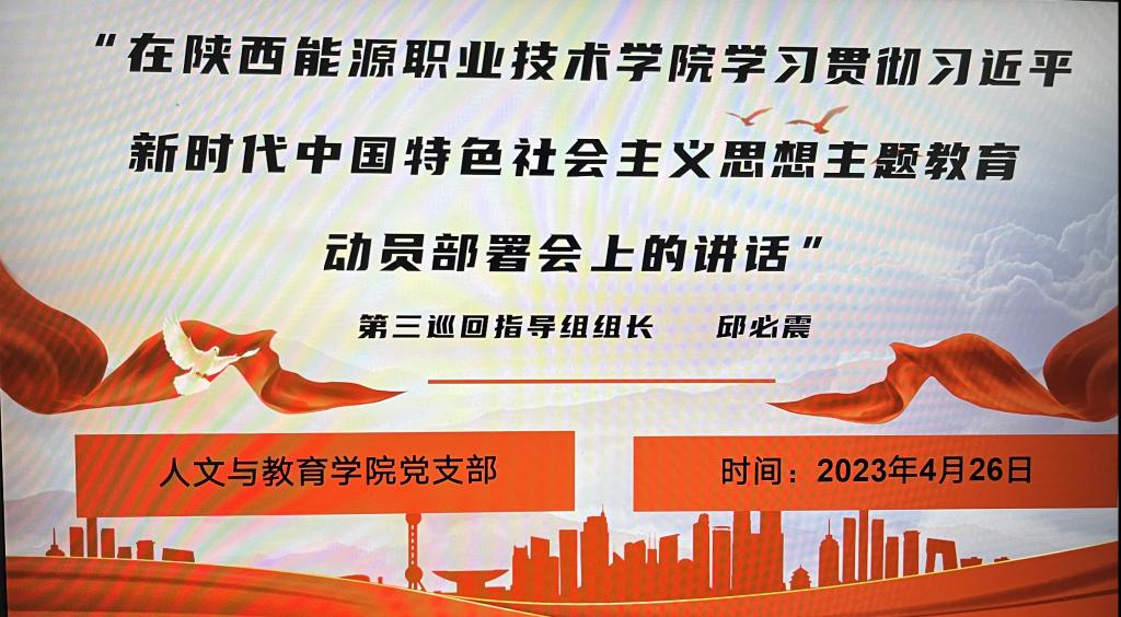 总支支委分别领学了陕西能源职业技术学院党委书记刘予东同志“在学习贯彻习近平新时代中国特色社会主义思想主题教育动员部署会上的讲话”,第三巡回指导组组长邱必震同志“在陕西能源职业技术学院学习贯彻习近平新时代中国特色社会主义思想主题教育动员部署会上的讲话”,通过学习,全体党员对学习贯彻习近平新时代中国特色社会主义思想主题教育的重要性有了进一步的认识。