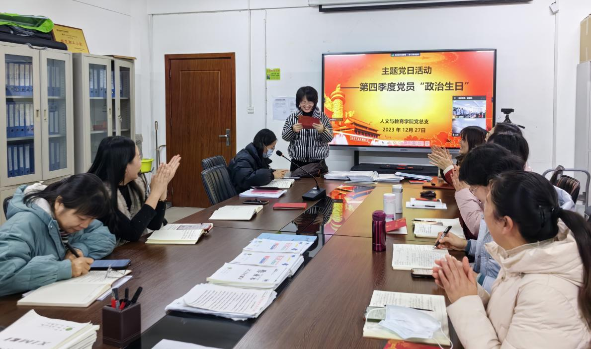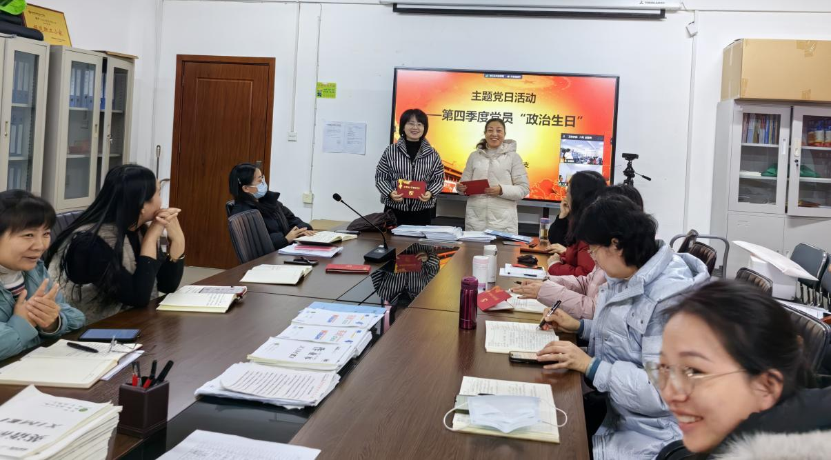 为进一步加强和规范党内政治生活,深化党员的身份意识、责任意识和宗旨意识。12月27日,我院党总支在学院会议室开展“同过政治生日 共忆入党初心”主题党日活动。学院副院长、党总支副书记王利荣及学院全体党员共同为在第四季度入党的沈东、陈欢、牛腊婷等8名党员过政治生日。党总支宣传委员王少华主持。