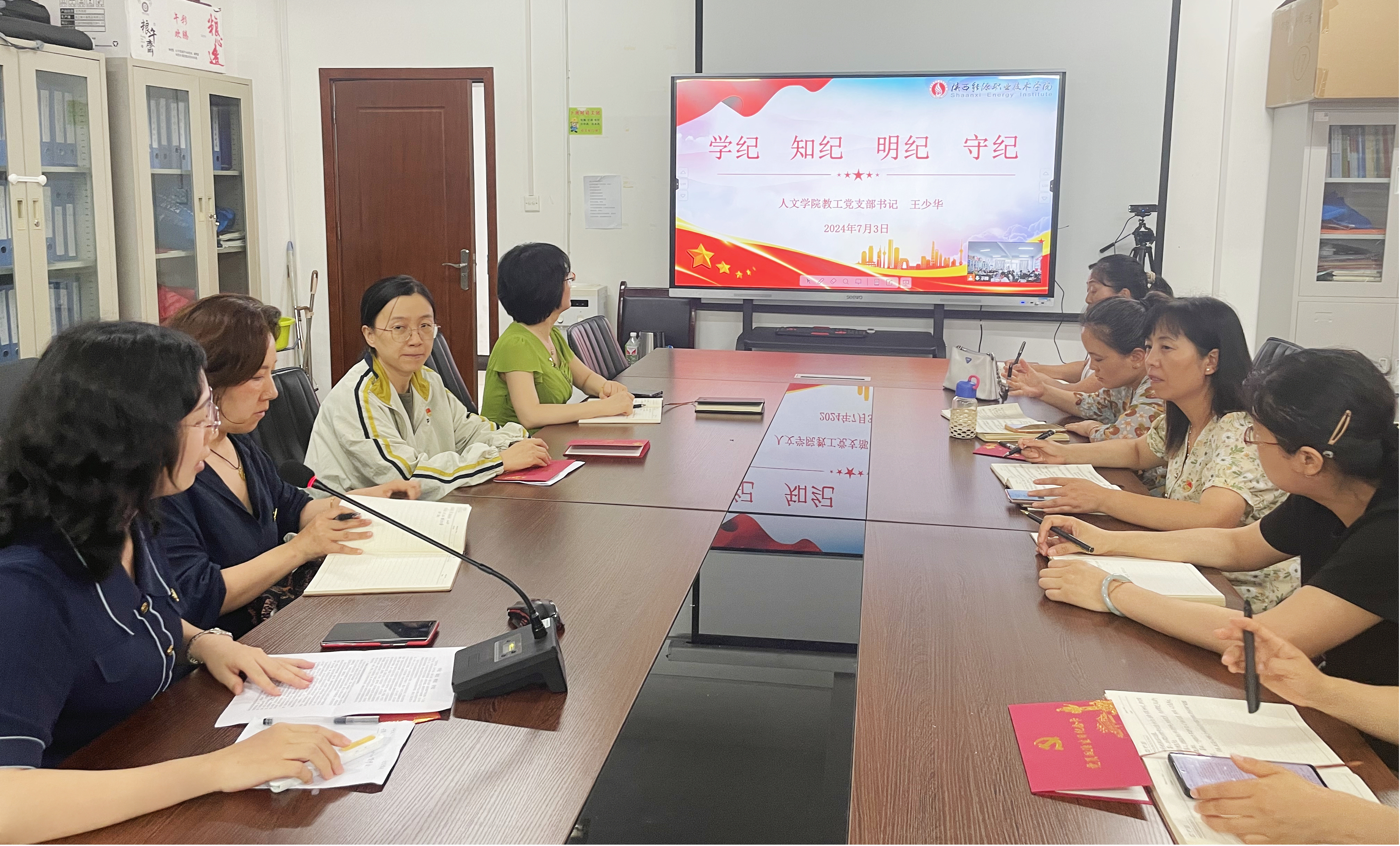 为进一步强化教工党员队伍的纪律意识,确保每位党员都能成为遵规守纪的表率,人文学院教工党支部于7月3日成功开展了以“学纪、知纪、明纪、守纪”为主题的专题党课。此次党课由教工支部书记王少华讲授,支部全体党员参加。